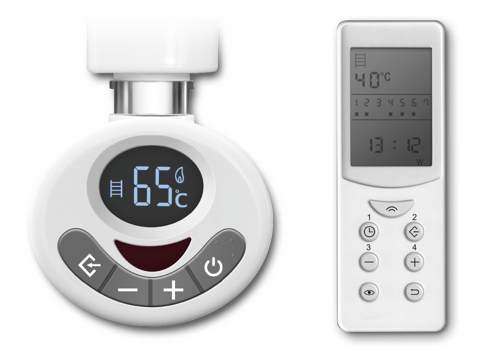 Diese Oberflächentemperatur ist für die Funktion eines Handtuchtrockners wichtig und gleichzeitig bestimmt sie damit auch die Raumtemperatur. Sie kann direkt als Soll-Temperatur angewählt werden und wird auch als Ist-Temperatur angezeigt. Die Temperaturwahl erfolgt einfach durch die +/- Tasten am Regelgerät in 5 °C-Schritten zwischen 30 °C und 70 °C.