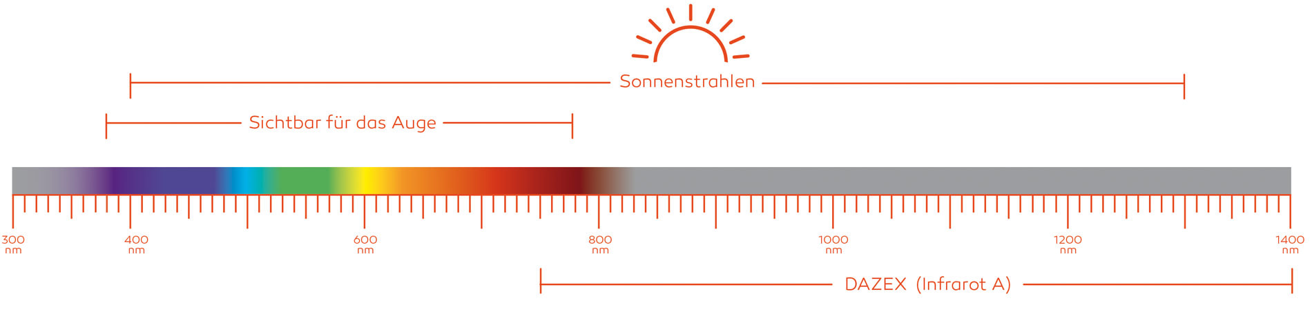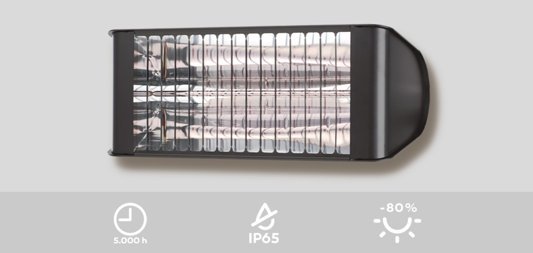 Gewöhnliche Heizstrahler emittieren einen erheblichen Teil des aufgenommenen Stroms als energiearmes, sichtbares Licht. Die von Welltherm entwickelte DAZEX-Technologie setzt genau hier an, indem es nahezu ausschließlich kurzwellige und energiereiche Infrarotstrahlen (IR-A) im Breich von 750 – 1.400 nm Wellenlänge abstrahlt. Das Resultat: Maximale Wärme bei optimaler Energieeffizienz.