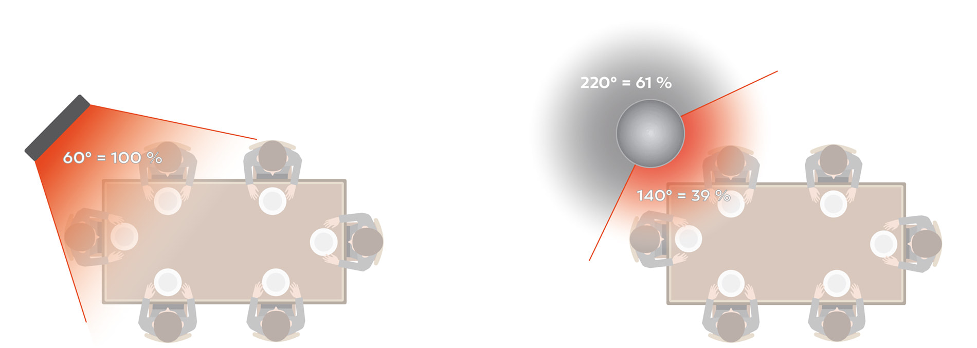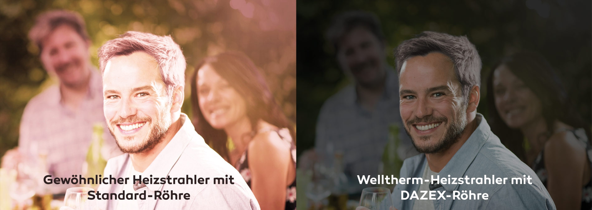Der direkte Vergleich zeigt: 80 % weniger Lichtentwicklung bei gleichzeitig maximaler Wärmestrahlung mit der DAZEX-Röhre