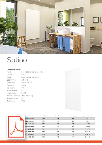 Das flache, hochwertige und dauerhaft hitzebeständige ESG-Sicherheitsglas der Infrarotheizung ist – wie auch der Rahmen – in sämtlichen RAL-Farben in matt oder glänzend erhältlich oder kann als gespiegelte Fläche eingesetzt werden. Alle Heizungsvarianten sind mit Rahmen und rahmenlos erhältlich.
